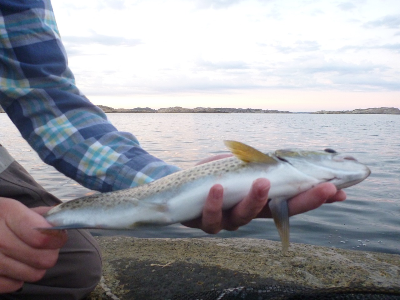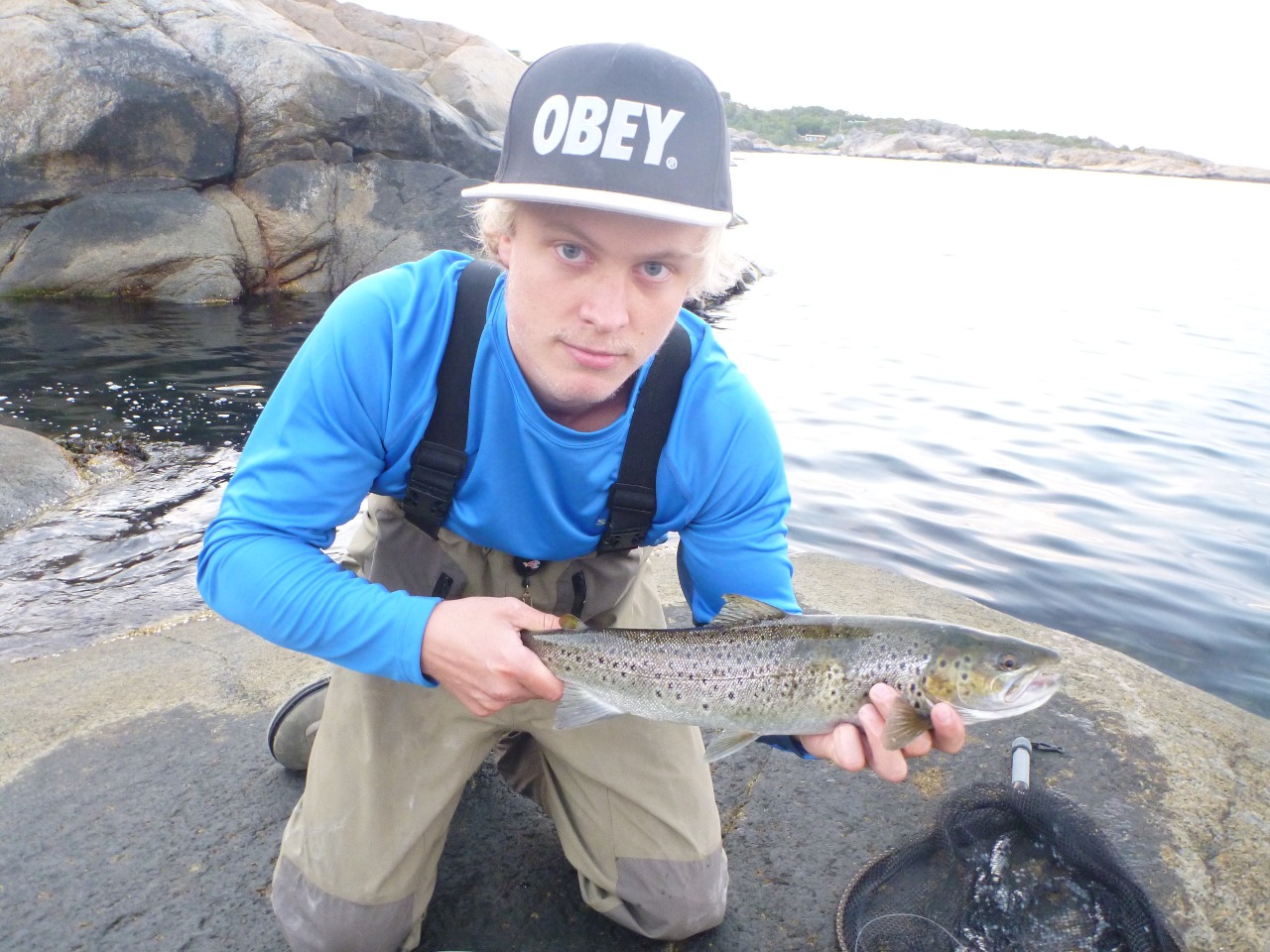 Kristoffer tok kveldens siste sjøørret. Den var kroket stygt i buken og måtte tas.